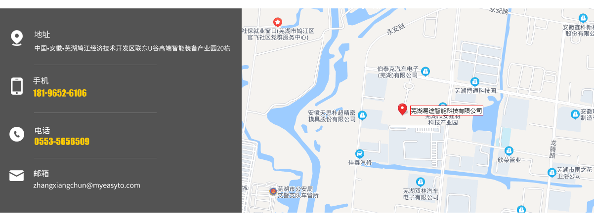 蕪湖易途智能科技有限公司,是一家致力于工業智能裝備的設計、制造、銷售及服務于一體的科技型企業,公司的主營業務是自動測試設備、智能制造產線和工業物聯系統,向用戶提供整體應用解決方案,以及相關的技術咨詢和培訓服務。 我們的產品和技術主要應用于汽...